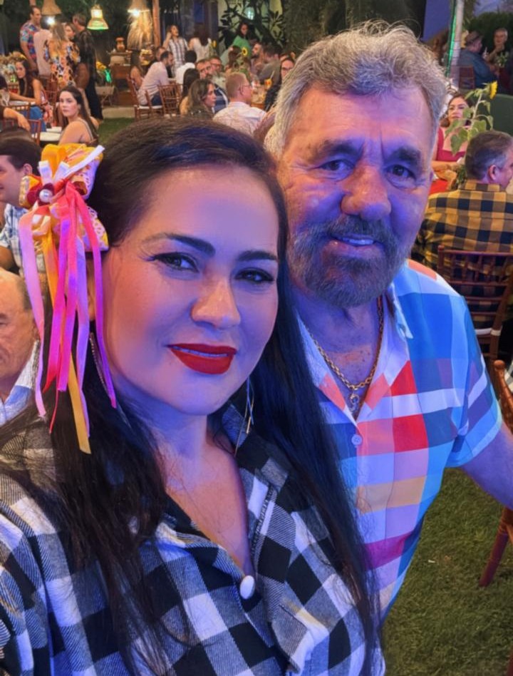 Antonia Lúcia com o husband Ivo Alencar no arraiá aniversário do Bida Carvalho