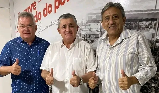Marcio Bilhar no clic com o deputado federal José Nobre Guimarães e o presidente da Câmara Municipal do Crato, vereador Florisval Coriolano.