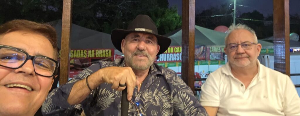 Já que falamos anteriormente em gente de sucesso no mundo empresarial, eis que aqui estou também sentadinho ao lado dos guapos empresários Ivo Alencar e Antonio Mendonça. O primeiro se resguardou um bocadinho do ruge/ ruge da ExpoCrato por conta que hospedou em sua house parquegranjeiriana filhos e netos e outros que tais. Já o segundo entrou numas de “pernas para que te quero”, pois adquiriu a compleição física de um adolescente e simplesmente gandaiou todos os dias da Expcrato 2025. Vou te contar…