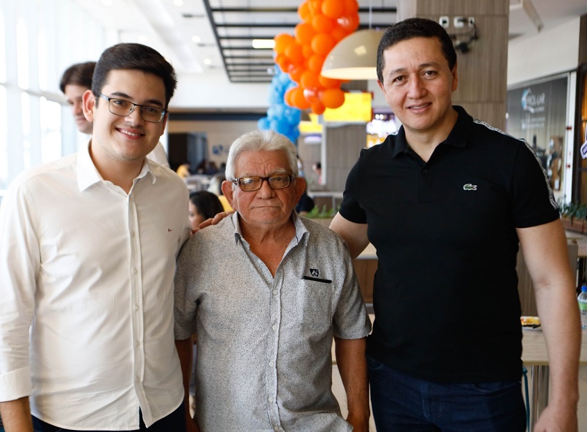Na confraria, Carmelo Neto posa ao lado do causídico Raimundo Marques e do prefeito romeiro Glêdson Bezerra.