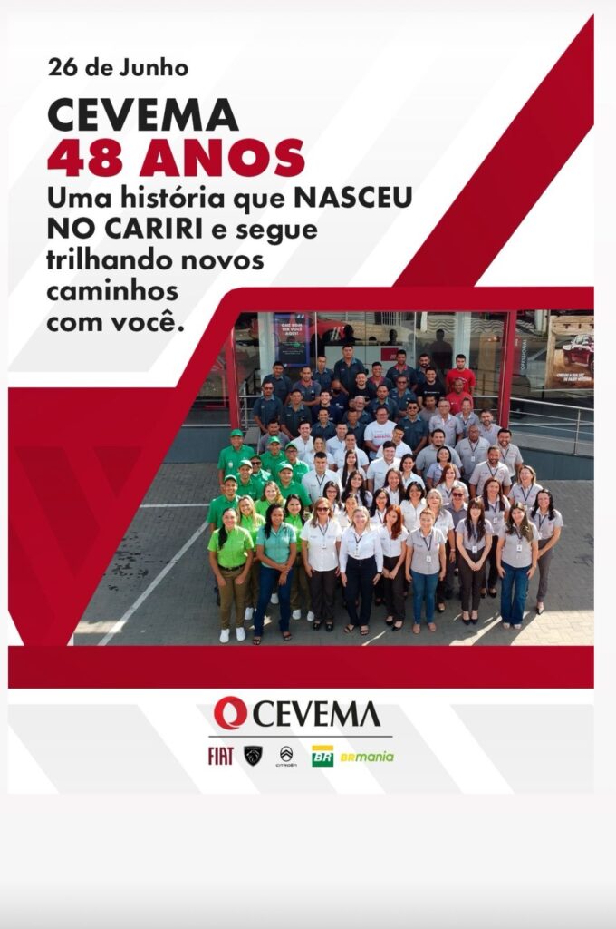 Neste ano, a Cevema celebra um marco histórico: 48 anos de atuação, quase meio século de dedicação, inovação e compromisso com os seus clientes. Fundada em 1977 no coração do Cariri cearense, a Cevema construiu sua trajetória pautada em valores sólidos e espírito empreendedor, tornando-se uma das mais tradicionais e respeitadas concessionárias da região. A história da Cevema se confunde com o desenvolvimento econômico e social do Cariri. Quando foi fundada, a região ainda dava seus primeiros passos em direção à modernização. Com visão de futuro, os empresários Luiziane Alencar e Tadeu Alencar acreditaram no potencial da terra natal e investiram em um setor que, à época, ainda era incipiente: o mercado automotivo.