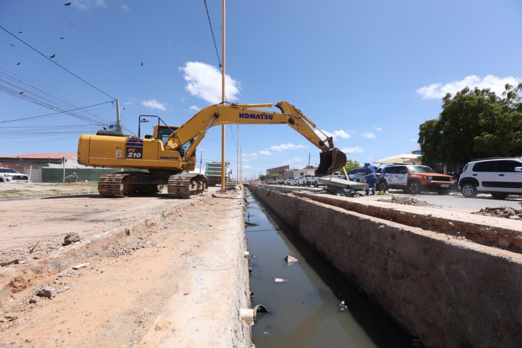 Prefeito André Barreto levou o governador para observar os trabalhos de requelificação ou talvez reconstrução do Canal do Rio Granjeiro, em Crato.