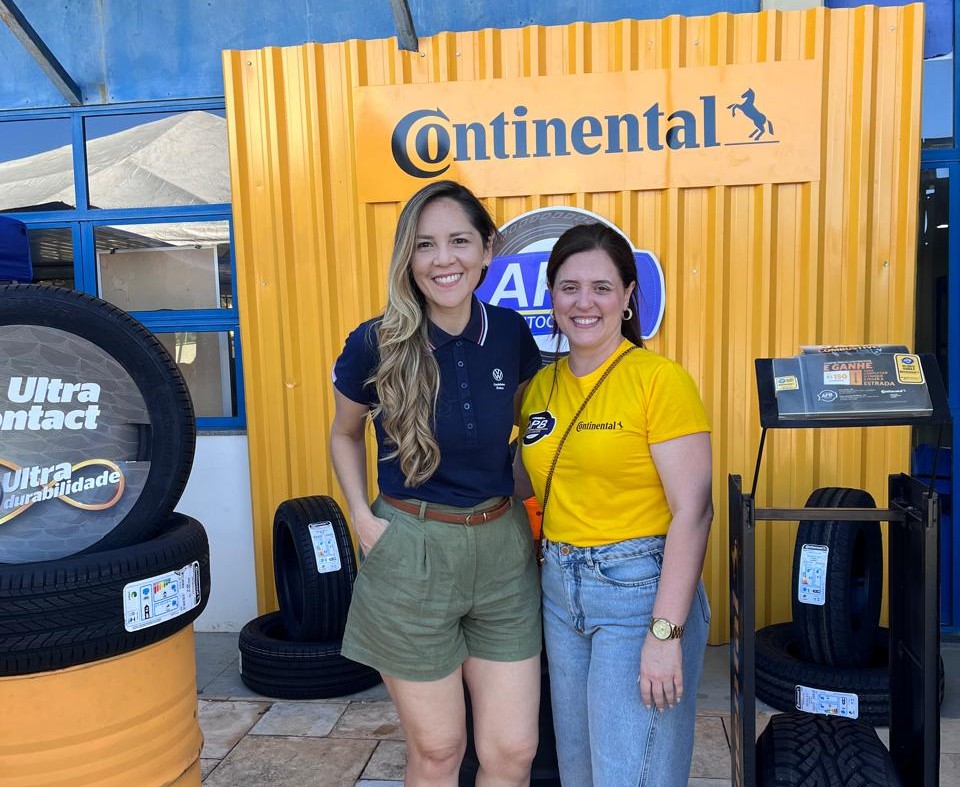 Bonitona Ana Nayara, gerente Cequip, com a empresária Aretha Primo de Brito, no stand da Revendedora de Pneus Continental naa Feijoada do Marcos Peixoto 2025. Aretha é a dona desta revendedora e filhota amada do empresário Antonio Augusto Primo de Brito.