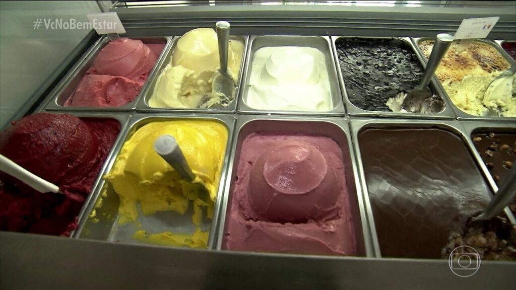Já o sorvete tradicional, popularizado na Europa e nos Estados Unidos, possui uma formulação mais rica em creme de leite, gemas, açúcar e ingredientes que garantem estabilidade e longa duração nas prateleiras. Além disso, recebe uma grande quantidade de ar no processo industrial, o que deixa a textura mais leve, porém aumenta o volume sem reduzir, de fato, o impacto calórico. Com teor de gordura entre 10% e 15% e açúcar que pode chegar a 20%, o sorvete tradicional oferece, em média, de 200 a 250 calorias por 100 gramas, sendo a opção mais calórica entre as três.