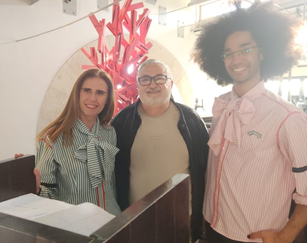 Geraldo sendo recepcionado porportugueses em point da moda lisboense