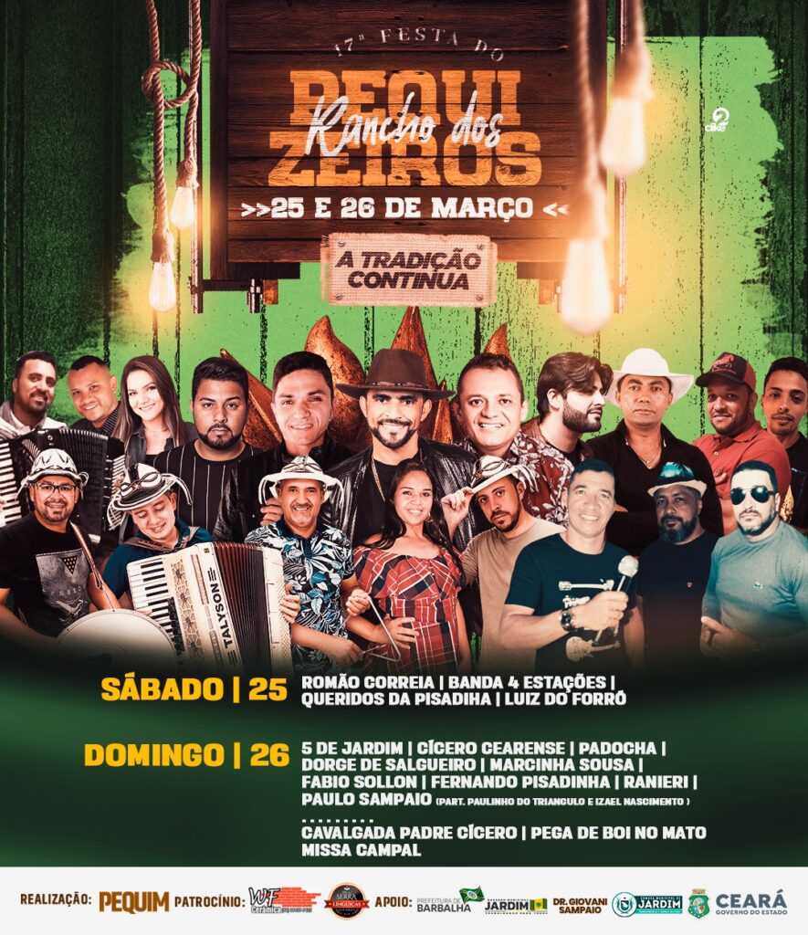 Todos os anos anos os jardinenses e em especial a family Roriz, aprontam aquele fuzuê na cidade de Jardim, Cariri cearense, com a realização de uma festa que até já virou tradição. Falo da 17ª Festa do Rancho dos Pequizeiros que este ano vai acontecer nos dias 25 e 26 de março, com a participação de vários cantores forrozeiros e sertanejos, bem ao estilo do público e da época em que a festança é promovida.