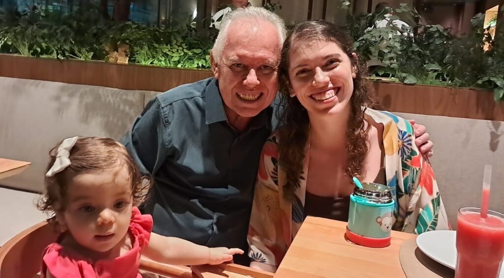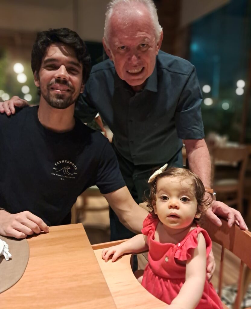 Com a baby Alice, Cesar Pierre Barreto é pura animação embalando Ana Claudia Cacau, as duas, neta e filhota deste amigo do meu querer.