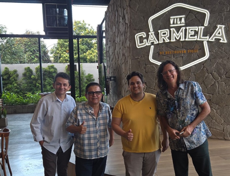 Marcos Peixoto e Isaac Cândido com o assessor jornalístico Eduardo Galdino e como figura central Raul Francelino que é dono da SteakHouse Vila Carmela, um  restaurante altamente especializado em carnes, com cortes selecionados e preparados de maneira única para garantir uma experiência de sabor inigualável. E tem um palco disputadíssimo por cantores daqui e alhures, diga-se de passagem.