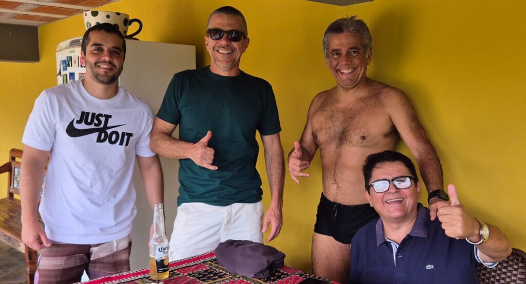 Diego, Felipe Augusto e Sergio Rebouças com Marcos Peixoto