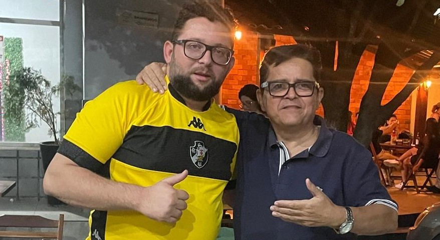 Novo cidadão exuense sendo cumprimentado pelo colunista Marcos Peixoto