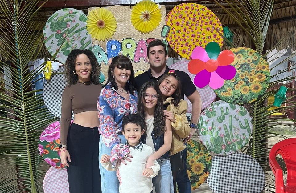 Monquinha França com a nora Marília, o filhote Lucas Cariri e a tropinha de netas e neto.
