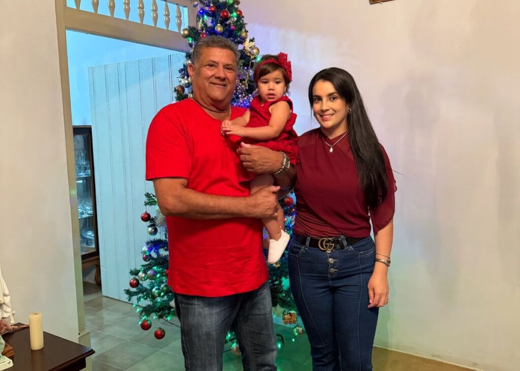 Empresário Newdes Gomes de Mattos com a filhota Marina e a esposa Ana Suyanne