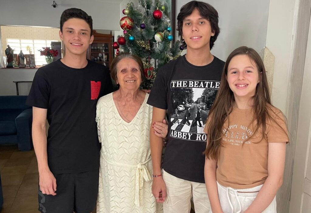Vovó Neide Barreto com os netinhos João Paulo, Pedro Lucas e Maria Julia