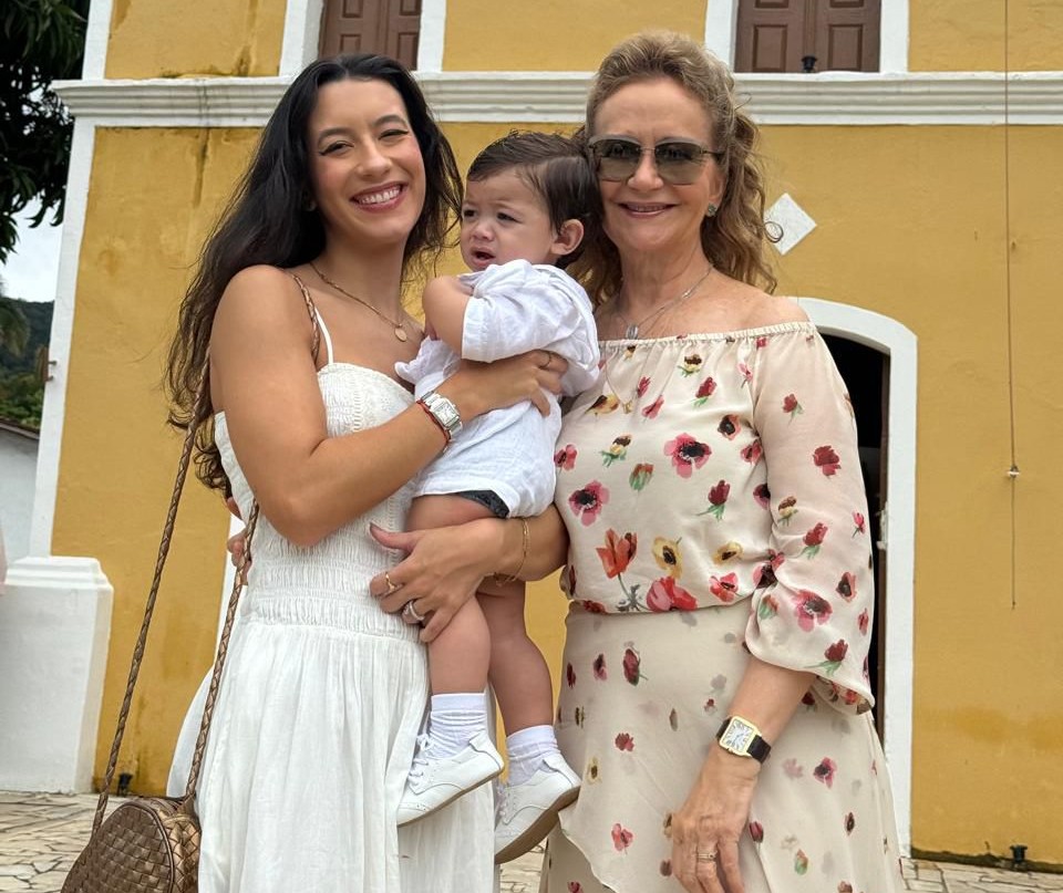 Raissa com o recém batizado Rafinha e a sempre elegante Maria Amélia Bezerra de Menezes