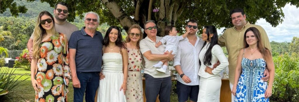 Victor Bezerra e Gisele Brito, Rommel Bezerra, Ana Amélia, Maria Amélia e Cocisfran com o neto Rafael, Gustavo Bezerra, e Raissa, Romminho Bezerra e Camilla Brasil
