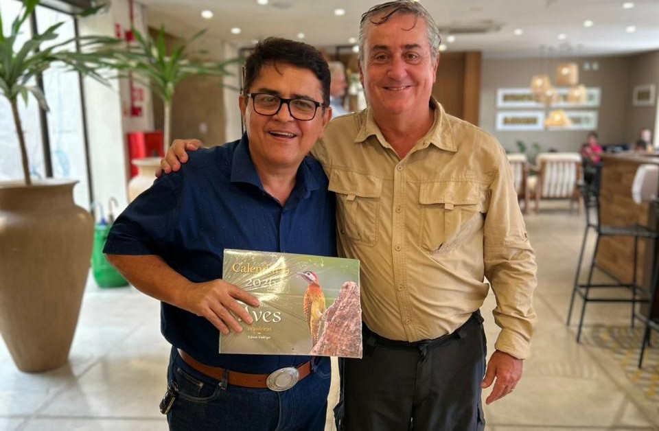 Chegou ao Cariri esta figura que aparece na foto comigo. Chama-se Edson Endrigo, descendente de italianos, que tem como missão nesta vida catalogar e organizar material voltado para as aves exóticas e raras do Brasil.