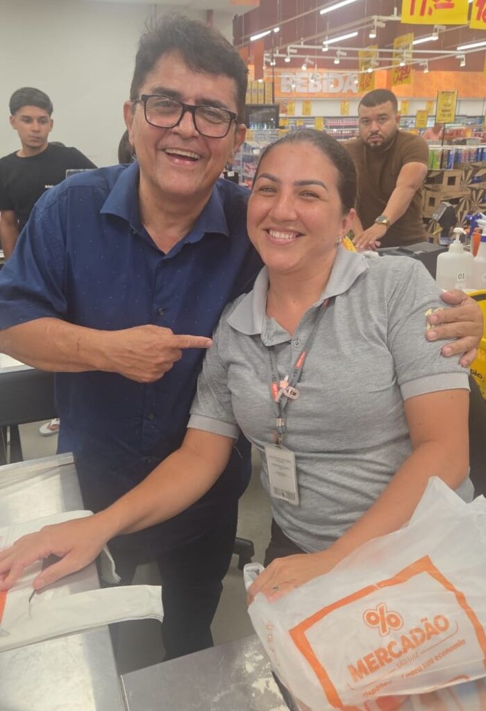 Marcos Peixoto e a caixa Bethânia, do Atacadão São Luiz do Crato