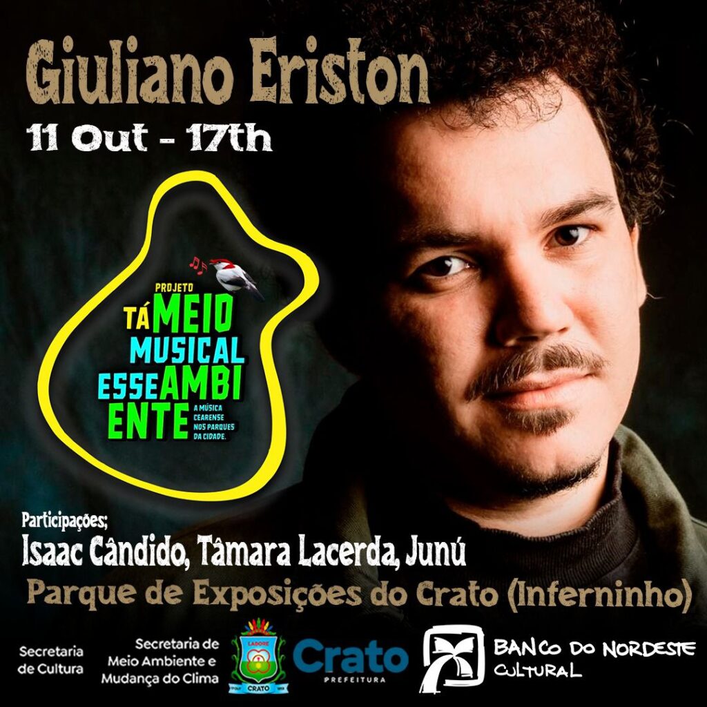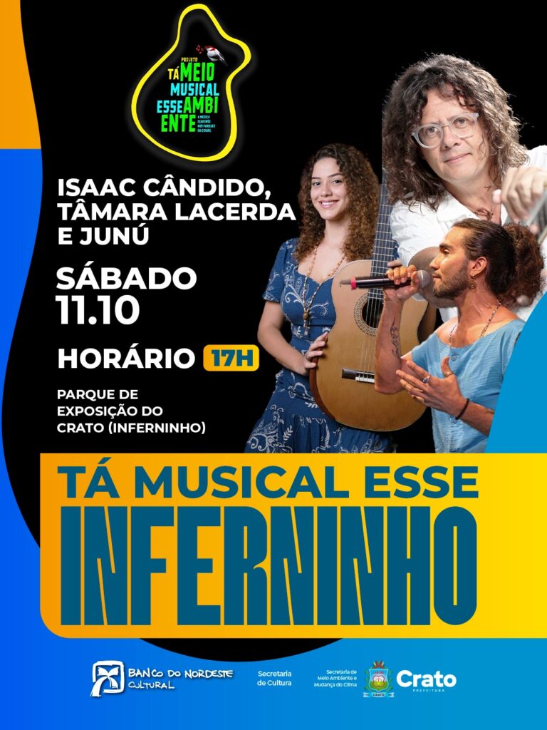 O Crato receberá, no próximo dia 11 de outubro, no Bosque do Parque de Exposição (Inferninho), o projeto “Tá Meio Musical Esse Ambiente”, iniciativa que transformará a paisagem natural em palco para uma experiência artística e ecológica. Com patrocínio do Centro Cultural Banco do Nordeste e apoio da Prefeitura do Crato, por meio das Secretarias de Cultura e de Meio Ambiente e Mudança do Clima, o evento celebrará a vocação da cidade como espaço de inovação cultural aliado à sustentabilidade.