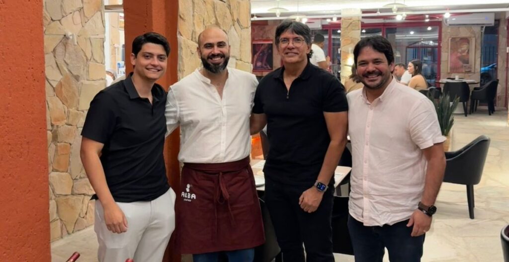 Breno Machado Coelho, chefe de cuisine do Alba Cucina, aniversariante e Diogo Machado